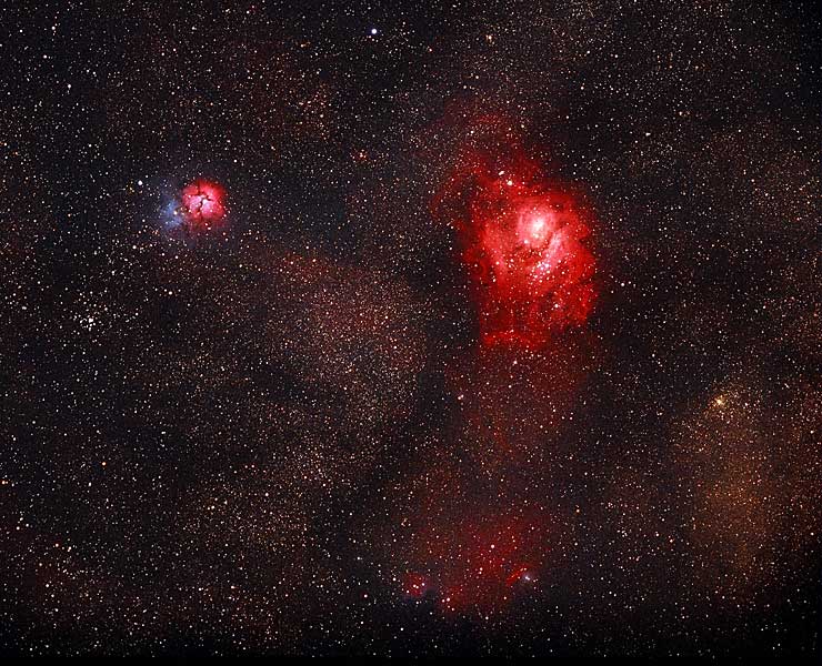 Sagittarius Milky Way - M20 "The Trifid Nebula" and M8 "The Lagoon Nebula" Previous Image Next Image Thumbnail Index